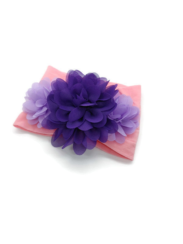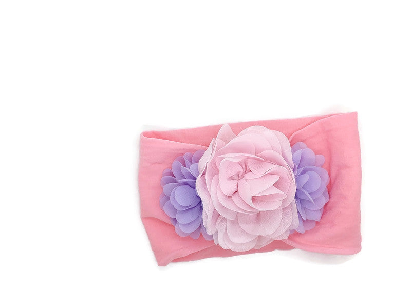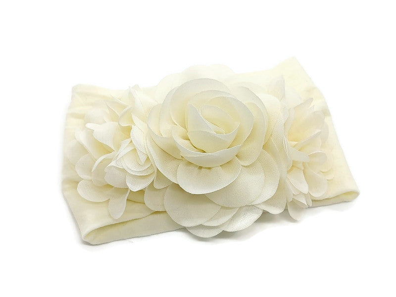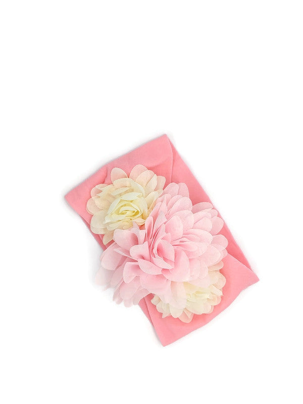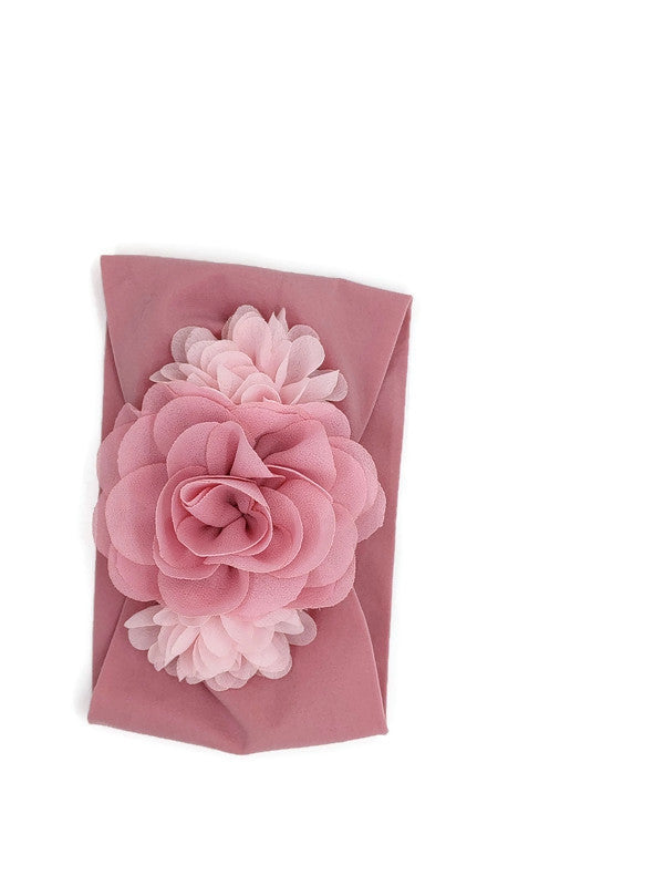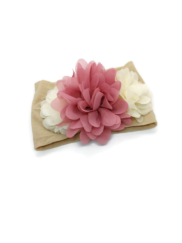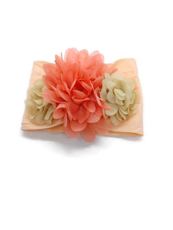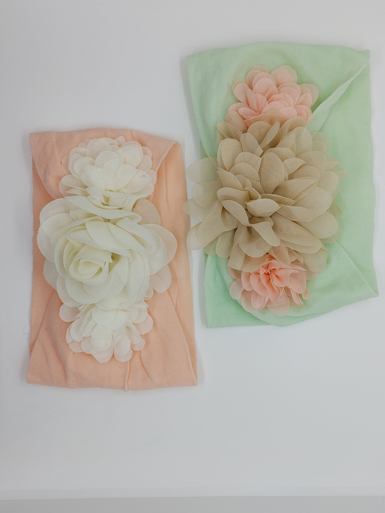 3 Fleurs assemblées sur bande nylon extra large très extensible