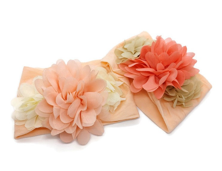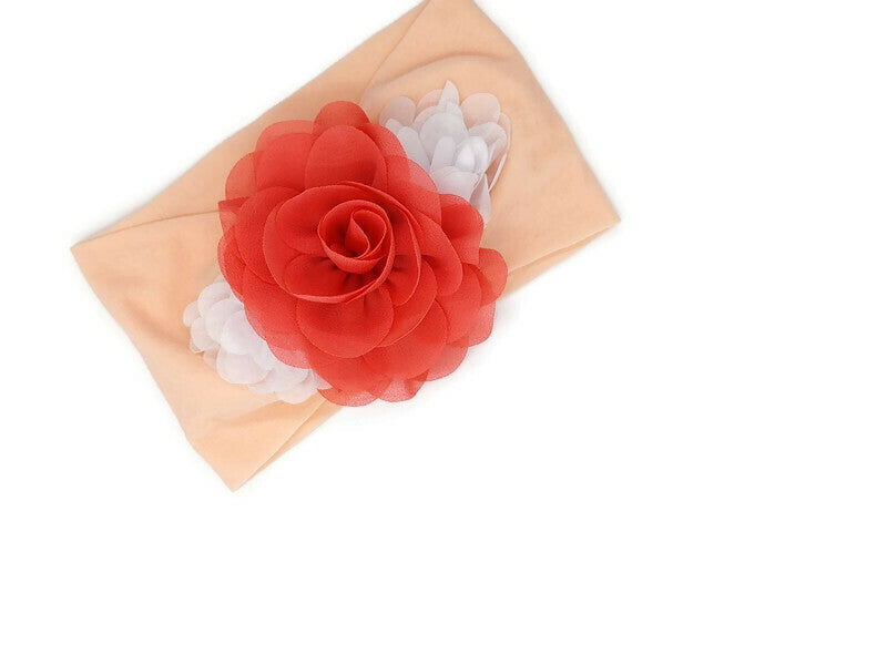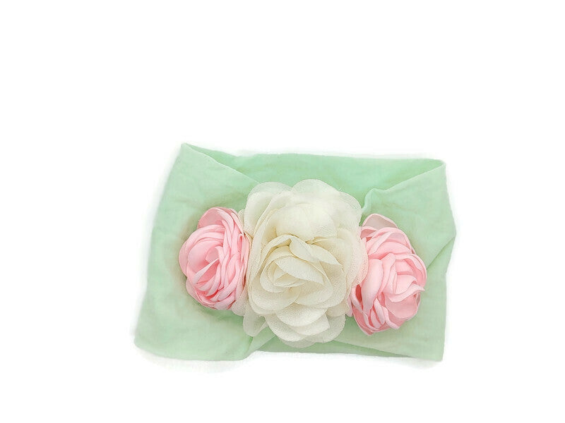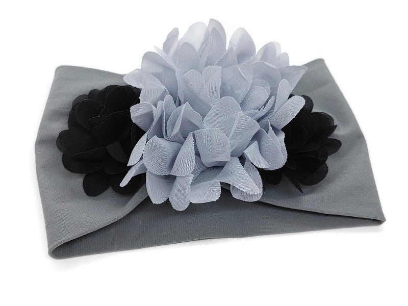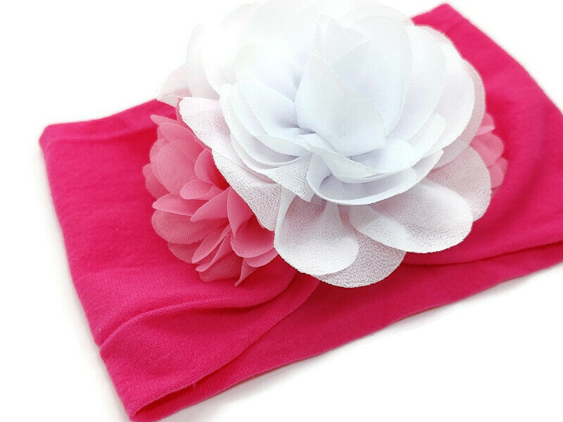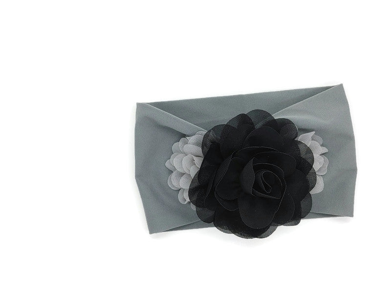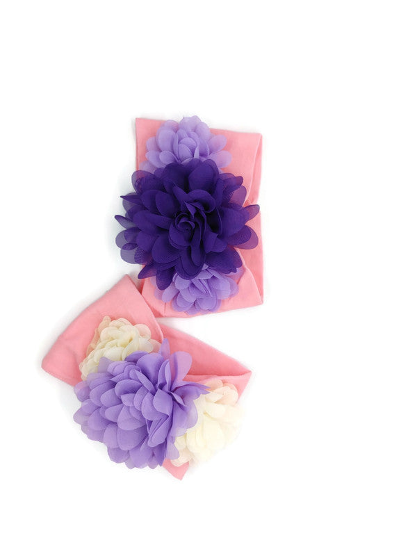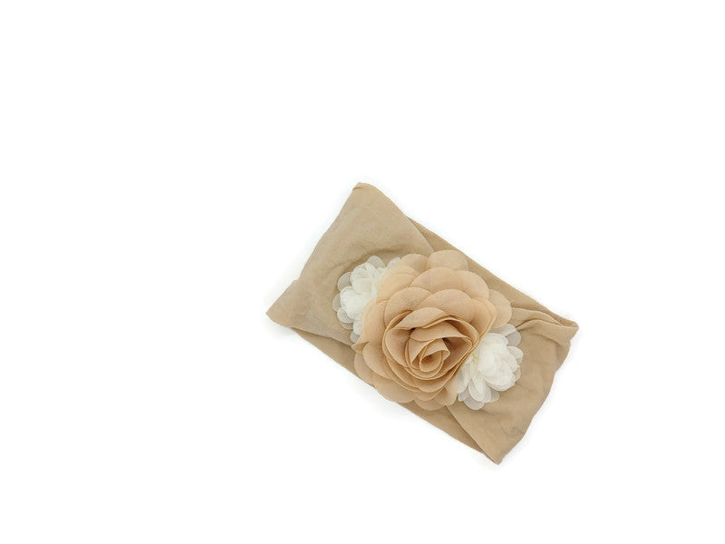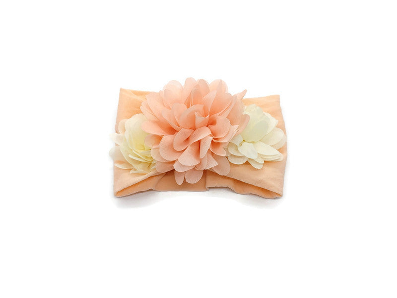 3 Fleurs assemblées sur bande nylon extra large très extensible