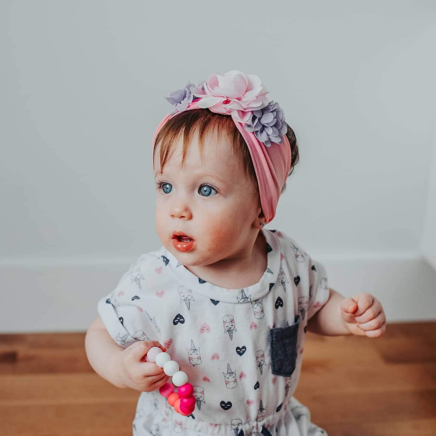 Ceci n'est pas un jouet, ne jamais laisser un bébé sans surveillance avec un bandeau élastique (risque d'étranglement)